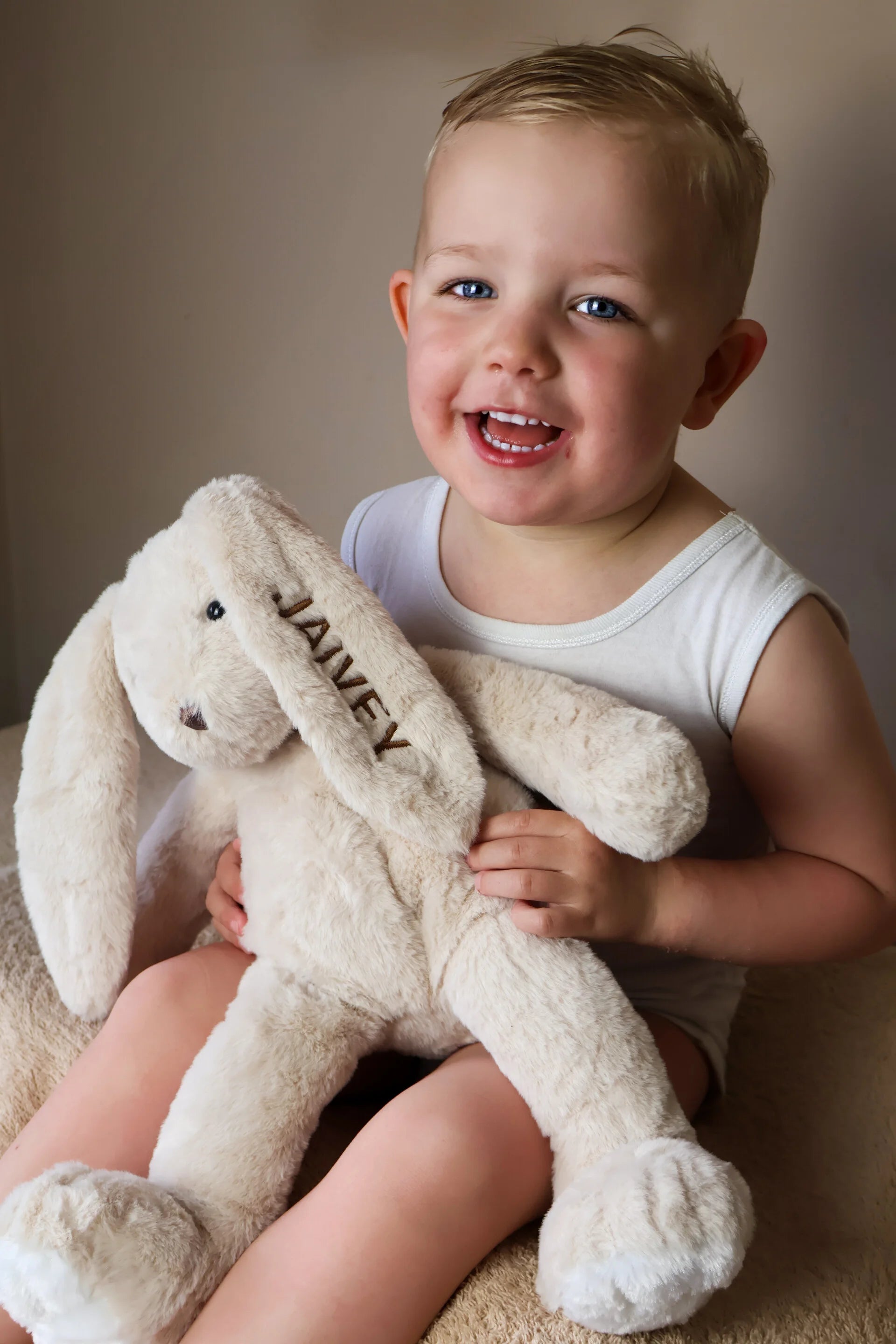 Maak het konijn extra bijzonder door hem te personaliseren met naam. Zo geef je een cadeau dat niet alleen schattig is, maar ook een blijvende herinnering vormt.