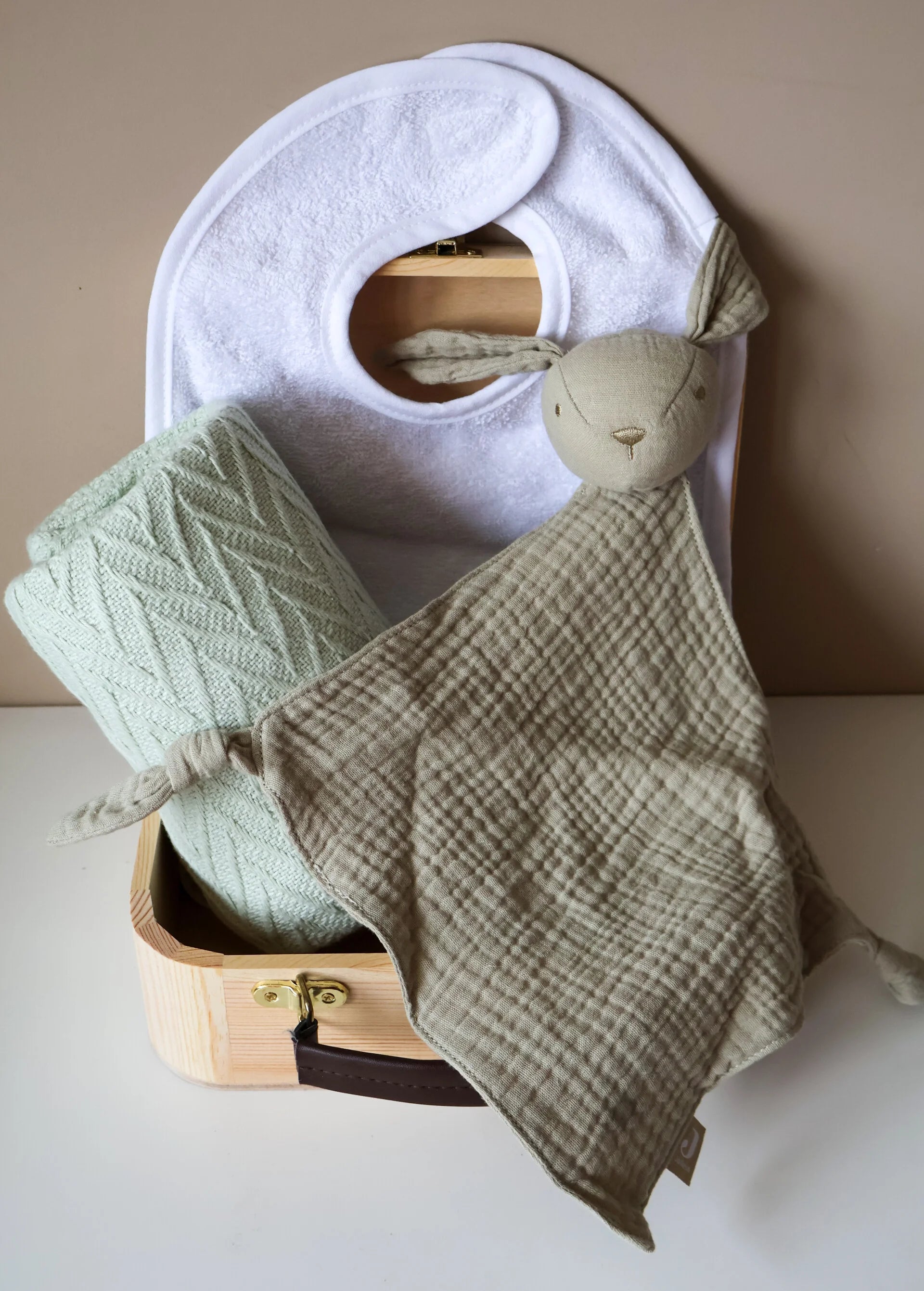 - 💚 Koffertje met naam – ideaal om de eerste spulletjes en herinneringen in te bewaren.