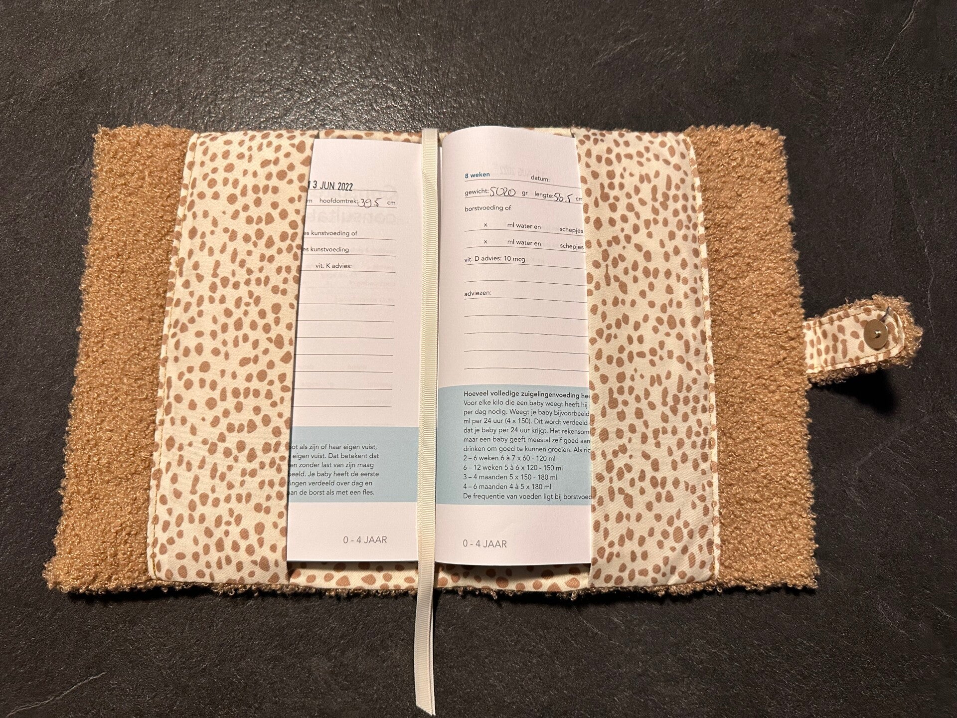 Maak je groeiboekje, notitieboekje of crecheboekje extra leuk met dit handige hoesje van het aaibare Bouclé! Het hoesje heeft een A5 formaat en buitenkant van de hoes is gemaakt van het zachte Bouclé. De binnenkant heeft een super leuke stippenprint en een twee leeslintjes. Het hoesje is verkrijgbaar in de kleuren Biscuit en Naturel.